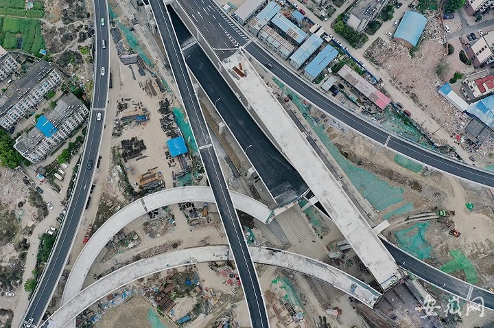該工程郎溪路方向全長630米,裕溪路方向全長1359米,分為四層互通立交,主線為分離式高架,錯層上跨裕溪路;共設(shè)6條匝道,分別為A匝道、B匝道、C匝道、D匝道、F匝道、H匝道。